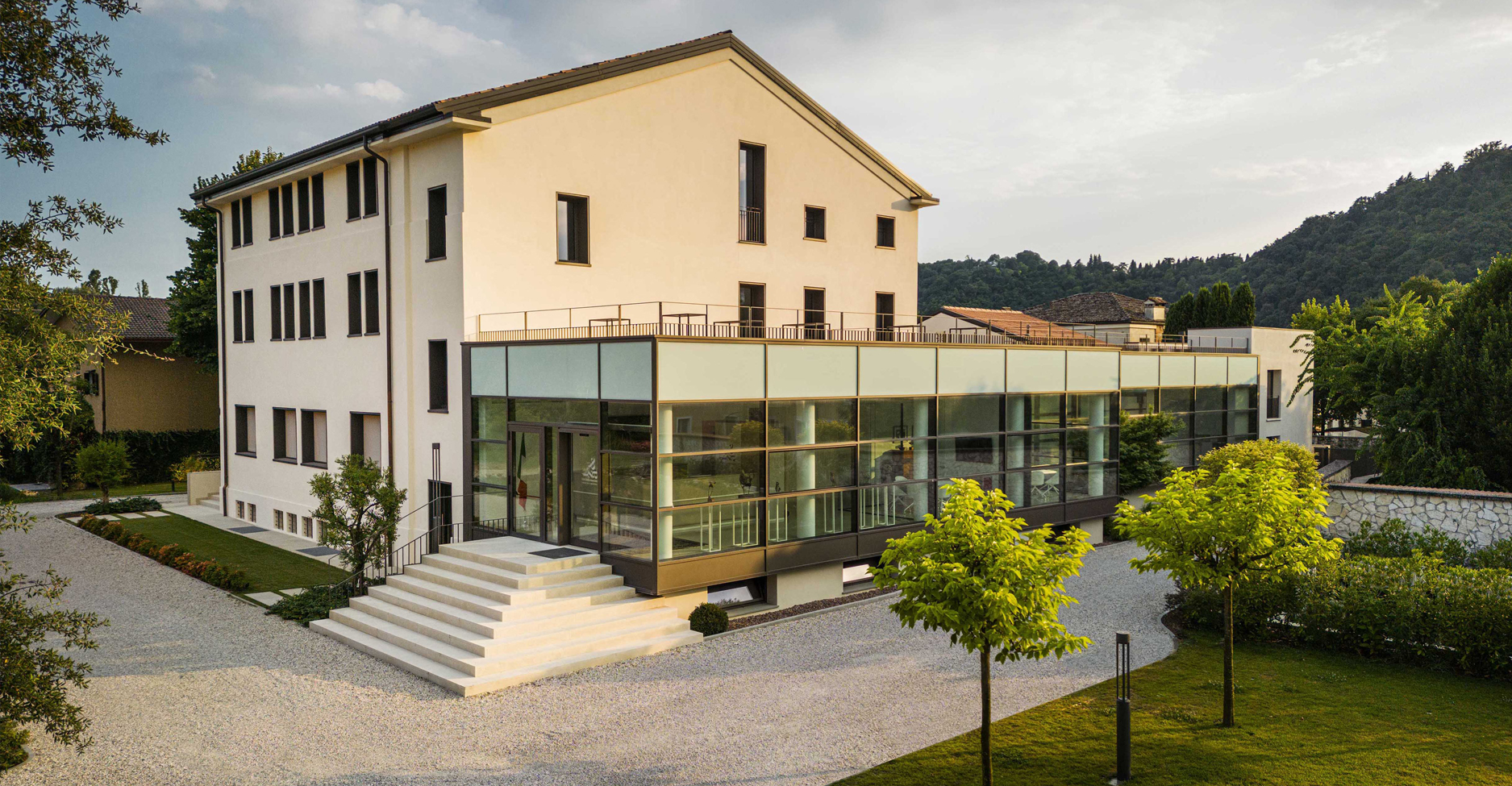 THE PROJECT INVOLVED THE RENOVATION OF A DISUSED PROPERTY INTO A NEW CORPORATE HEADQUARTERS FOR A MAJOR ACCOUNTING FIRM IN VICENZA. THE AREA IS LOCATED IN THE VALLETTA DEL SILENZIO, A FEW STEPS FROM VILLA "LA ROTONDA" BY ANDREA PALLADIO, A UNESCO WORLD HERITAGE SITE.