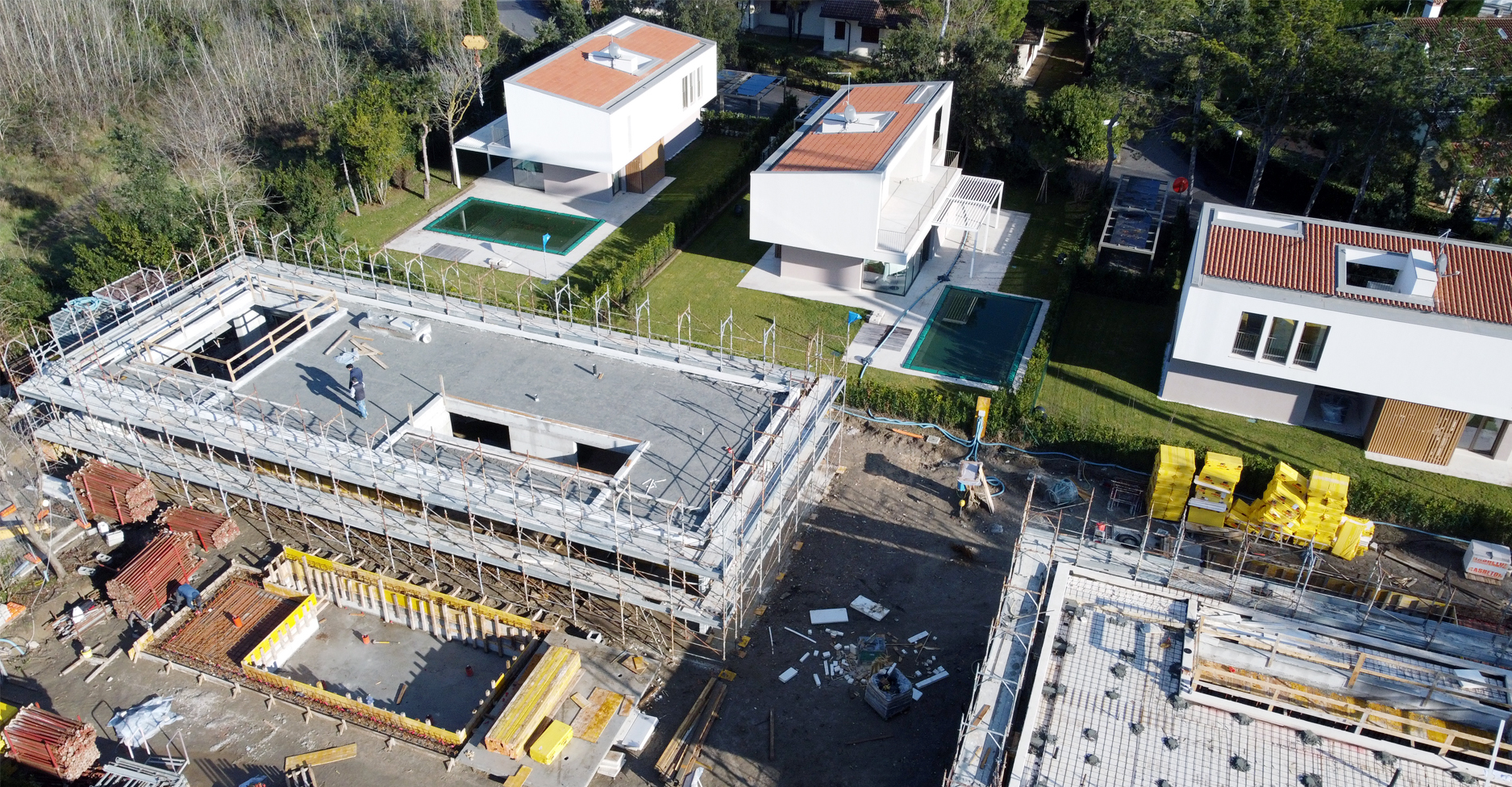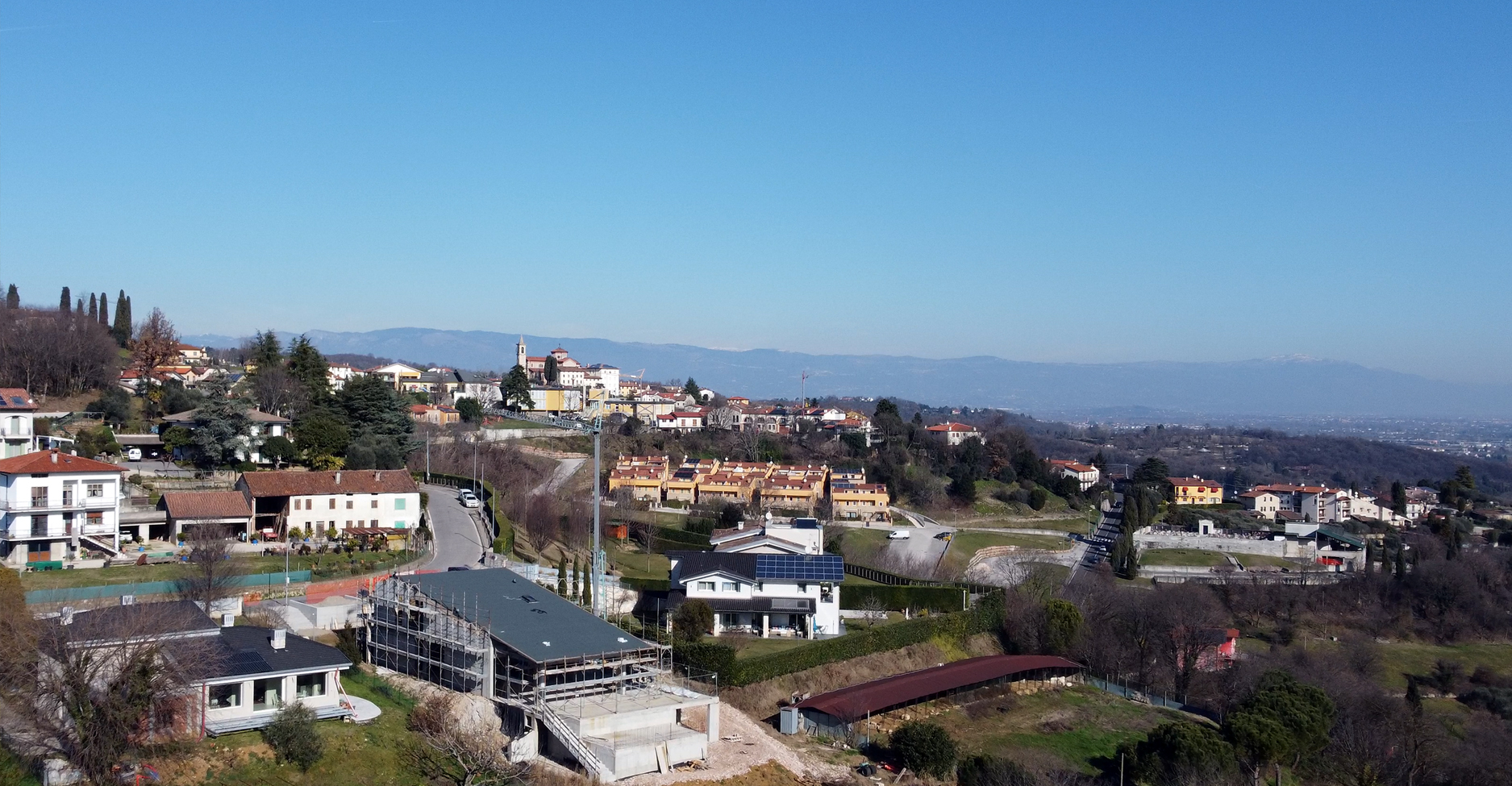 THE LARGE SINGLE ROOF PLANE OF A PRIVATE RESIDENCE IN THE VICENZA HILLS HAS BEEN COMPLETED. EXPECTED COMPLETION OF WORKS BY 2025.